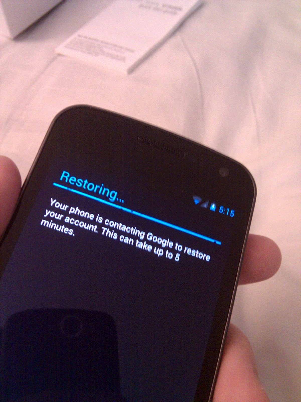 Un autre point très bonne gagnante, c'est que dans les 15 minutes de mise sous tension du Nexus j'ai eu un système de mise à jour à la dernière version de 4.0.4. J'aurais attendu des mois pour le HTC à être mis à jour car la mise à jour de Google irait à HTC, à partir de là ils l'envoient à AT & T, puis à moi, afin que cela allait prendre une éternité. Avec le Nexus, le chemin est Google -> Me! Aucun homme du milieu et c'est un bon sentiment!